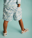 KIDLY by MORI Recycled Swim Shorts look brilliant for day wear, but we've designed them for maximum fun in the water too. A comfy elasticated waist with shoelace draw cord means they're easy to pull on and they won’t come adrift in lively surf, or when your kids jump into the pool. There’s a comfy mesh lining, a back pocket for shell collectors with a clever drainage hole, so it won’t fill with water. Team with a toning rash vest for sun protection or for longer spells in colder water and pair with the matching Bucket Hat.